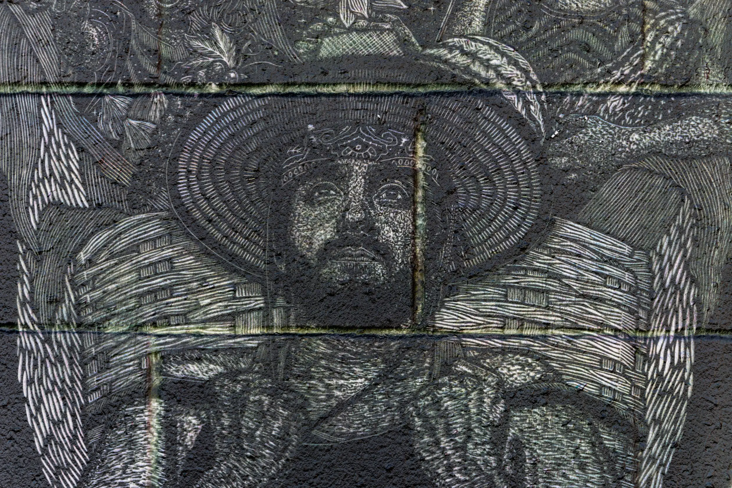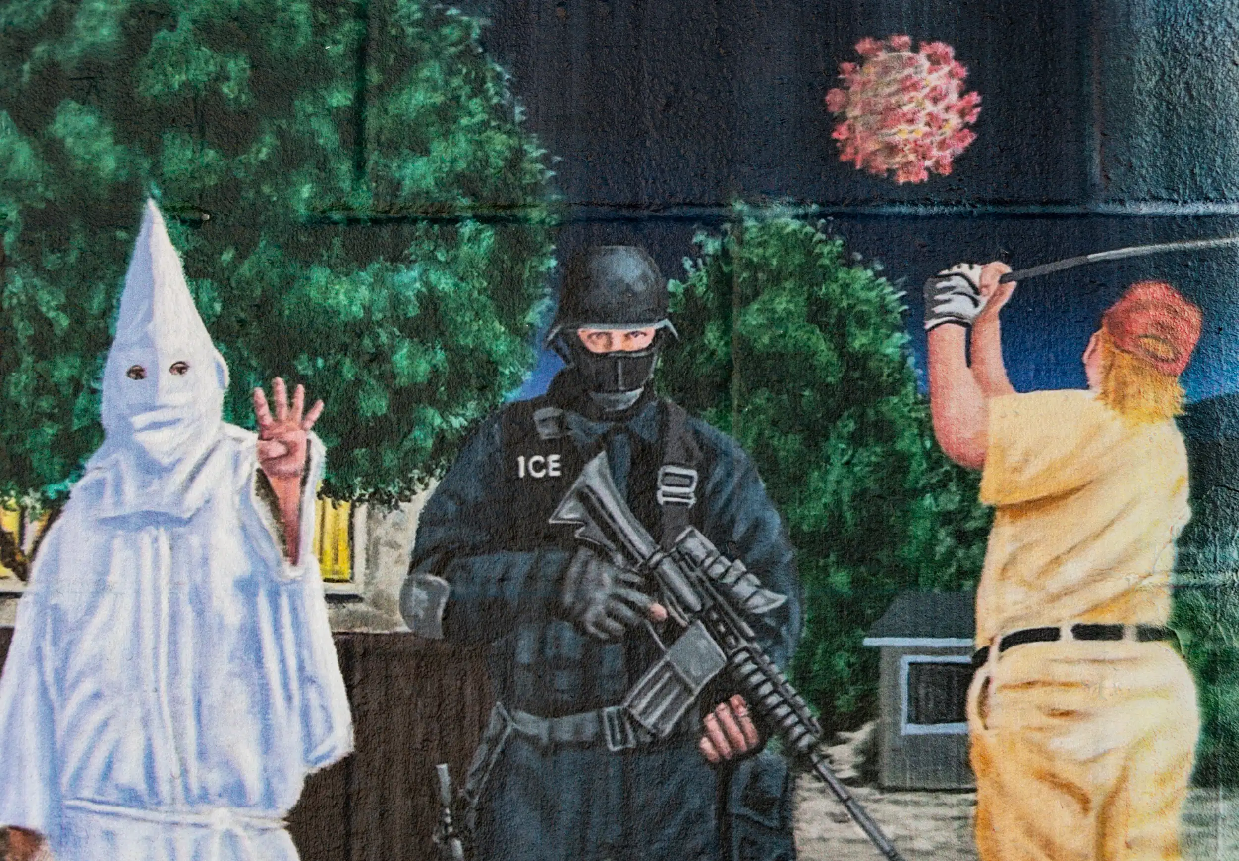 “These painting are my therapy for mentally surviving the MAGA insanity. The wall that separates the haves and have nots with with specific caveats etched into the wall.”