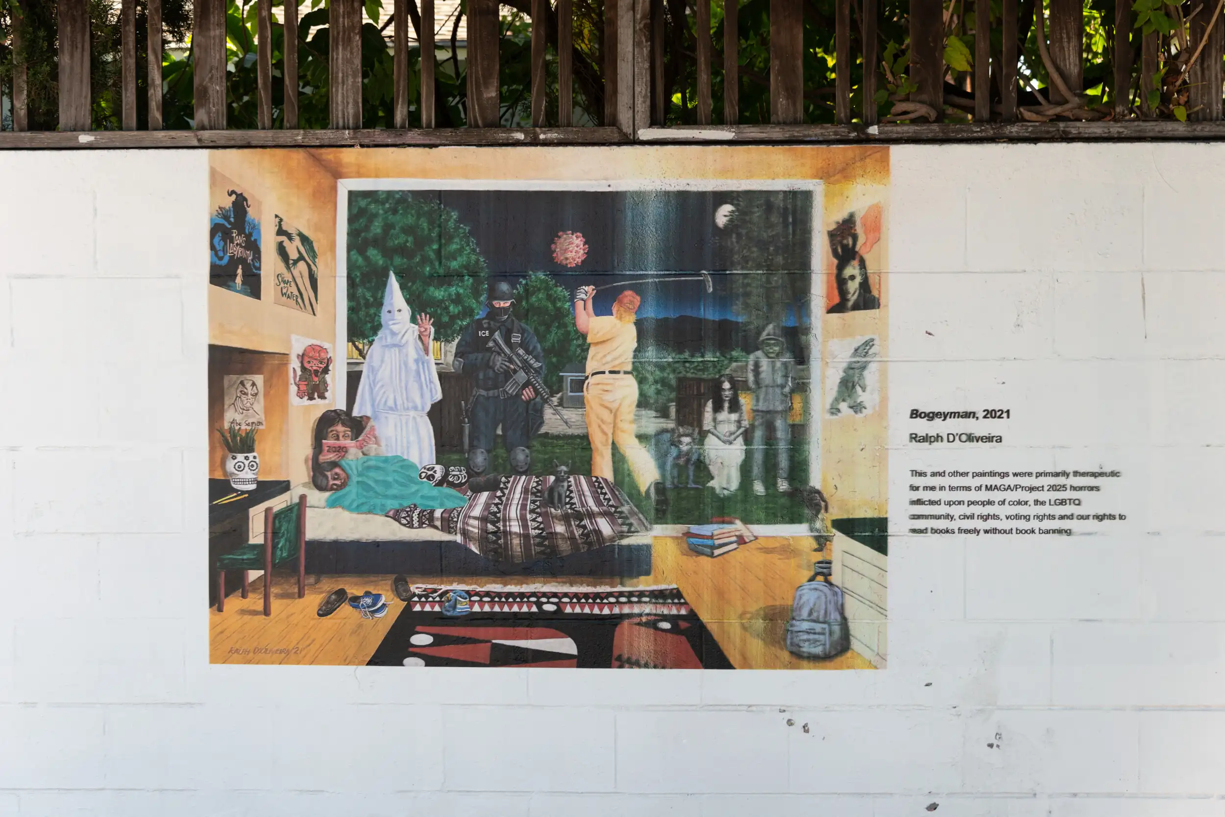 “This and other paintings were primarily therapeutic for me in terms of MAGA/Project 2025 horrors inflicted upon people of color, the LGBTQ community, civil rights, voting rights and our rights to read books freely without book banning.”